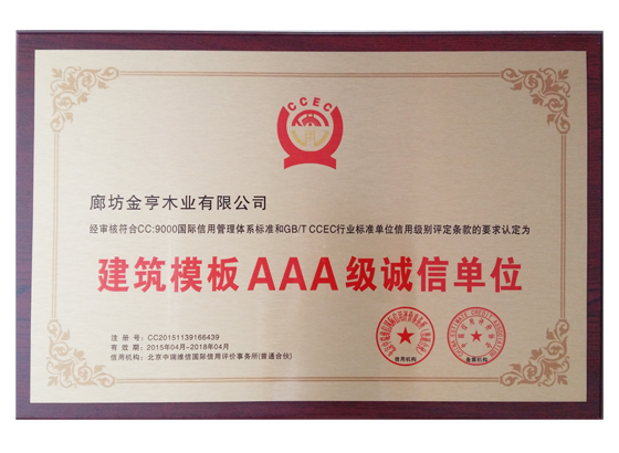 建筑模板AAA級誠信單位