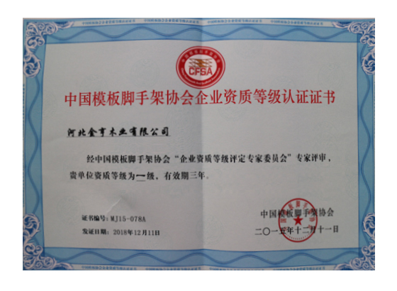 中國模板腳手架協會企業資質等級認證證書
