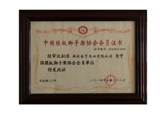 金亨木業有限公司被中國模架協會評為“副理事長單位”