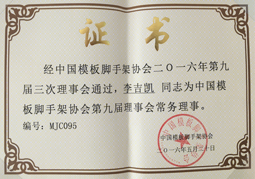 中國模板腳手架協會第九屆理事會常務理事