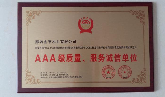 AAA級質量、服務誠信單位