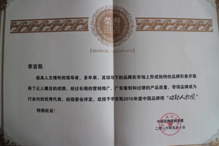 李吉凱同志被授予“2015年度中國品牌榜功勛人物獎”