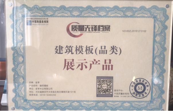 質量先鋒檔案“建筑模板類”唯一展示產品