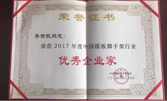 董事長李吉凱同志被授予優秀企業家稱號