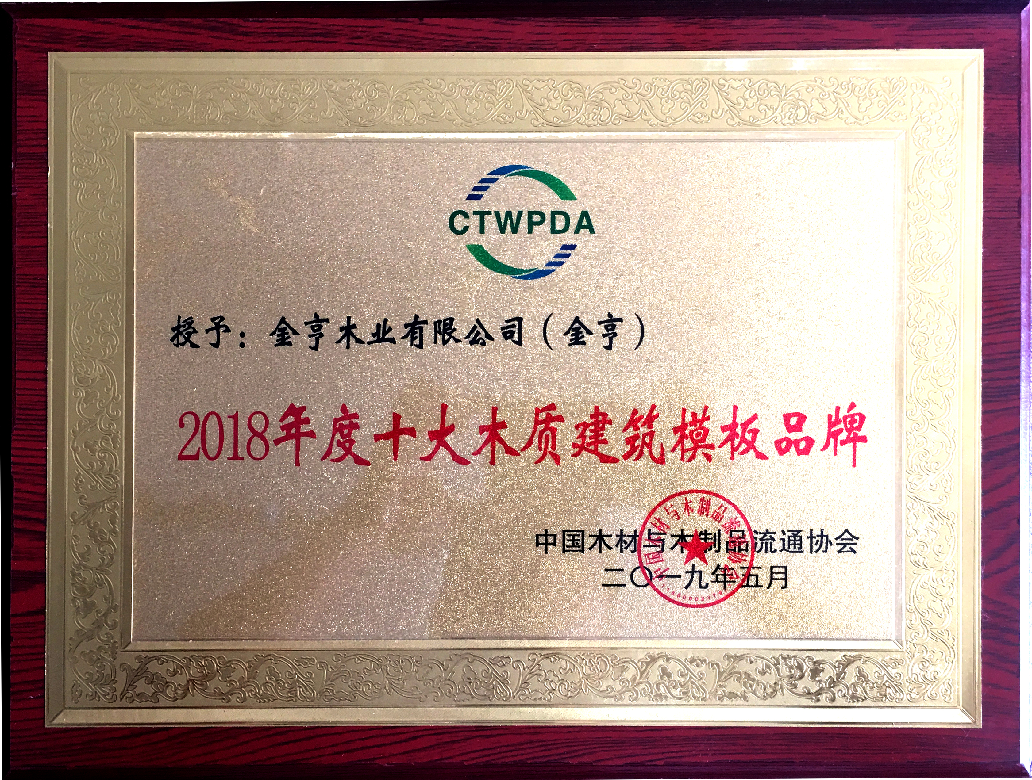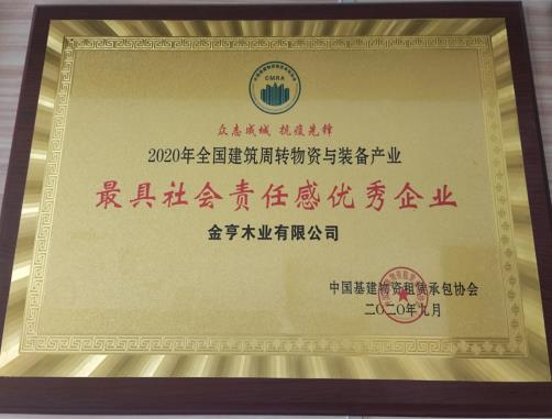 金亨木業有限公司獲評“2018年度十大木質建筑模板品牌”
