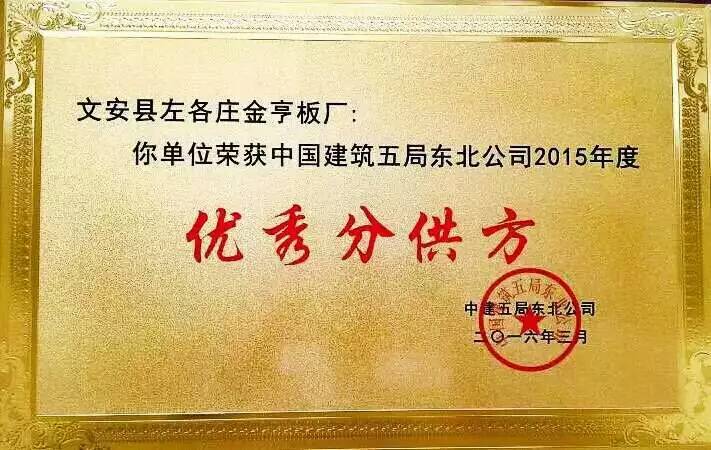 中建五局東北分公司優秀分供方