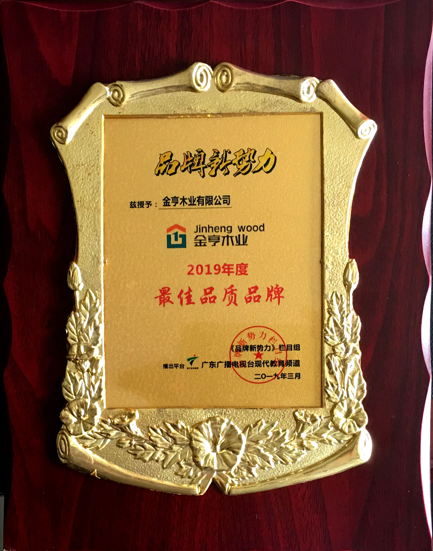 金亨木業有限公司獲評 品牌新勢力“2019年度更佳品質品牌”